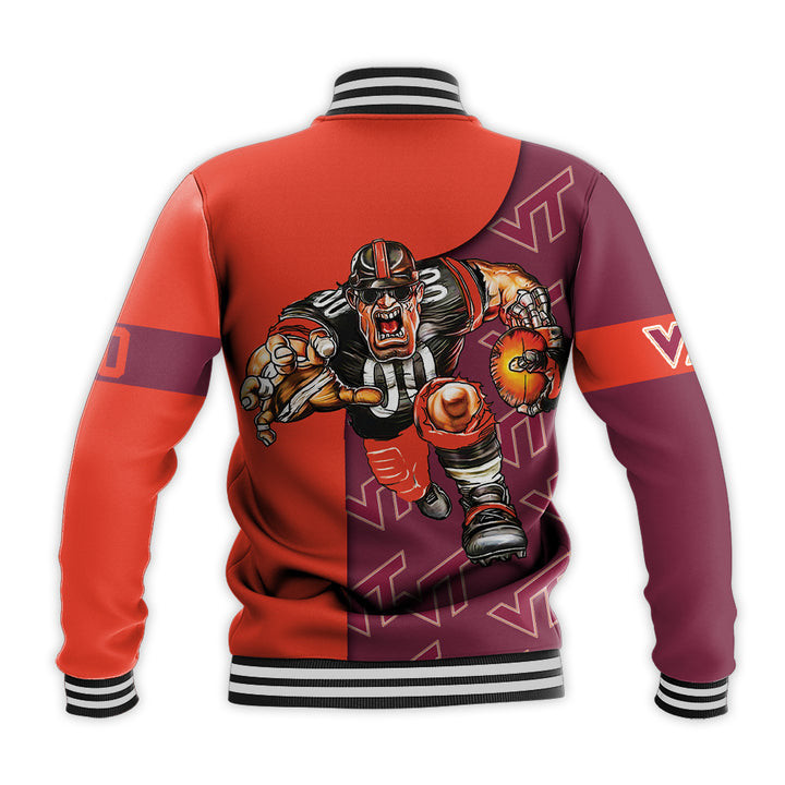 NCAA Virginia Tech Hokies Personalized Name Number Orange Maroon Baseball Jacket for Men & Women | NCAA Team Fan Gift