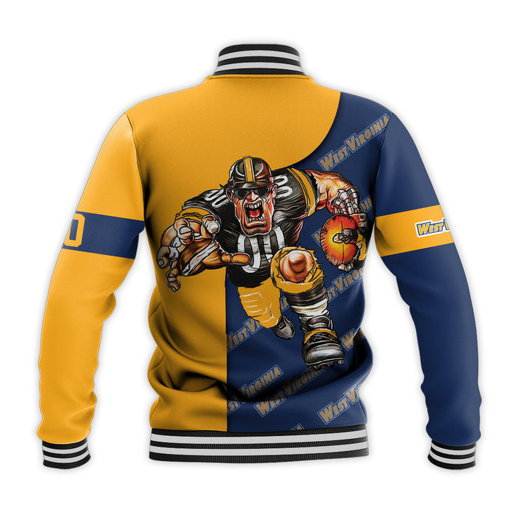 NCAA West Virginia Mountaineers Personalized Name Number Blue Gold Baseball Jacket for Men & Women | NCAA Team Fan Gift