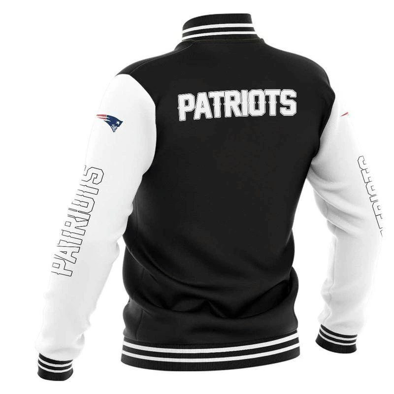 New England Patriots Black White Basic Varsity Baseball Jacket for Men & Women | NFL Team Fan Gift
