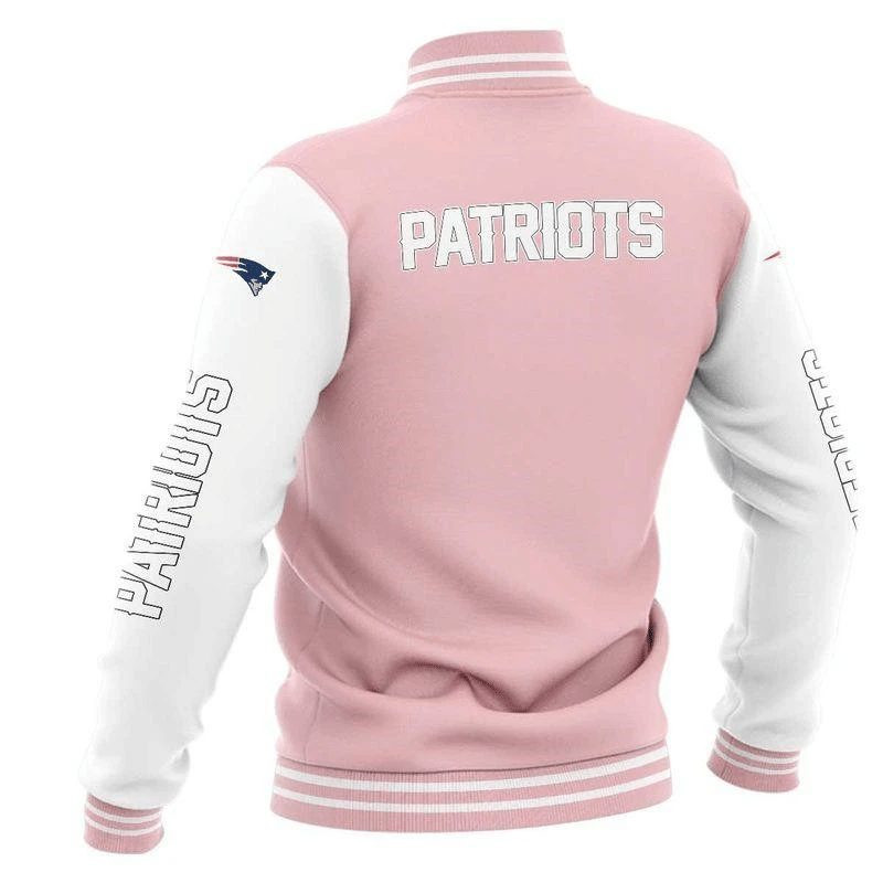 New England Patriots Pink White Basic Varsity Baseball Jacket for Men & Women | NFL Team Fan Gift