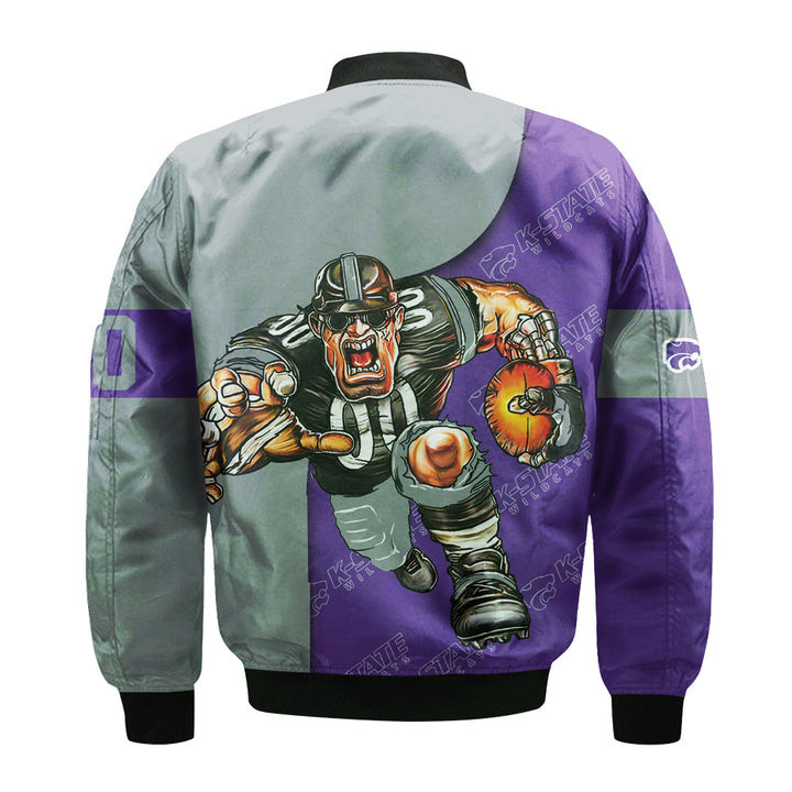 Kansas State Wildcats Personalized Name Number Purple Silver Mascot Bomber Jacket | NCAA College Team Jacket for Men & Women | Sports Fan Gift