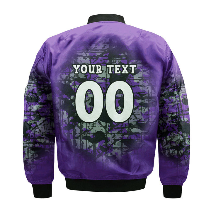 Kansas State Wildcats Personalized Text Number Purple Silver Bomber Jacket | NCAA College Team Jacket for Men & Women | Sports Fan Gift