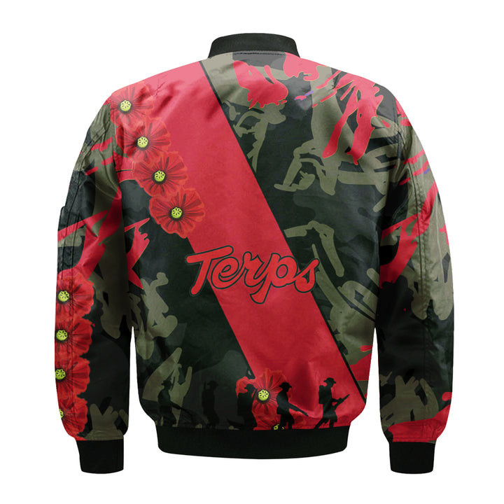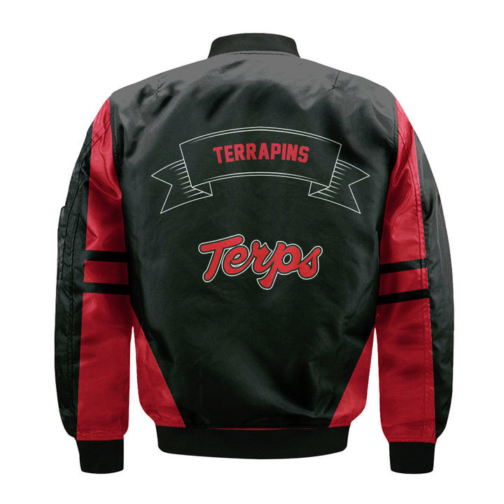 Maryland Terrapins Red Black Bomber Jacket | NCAA College Team Jacket for Men & Women | Sports Fan Gift