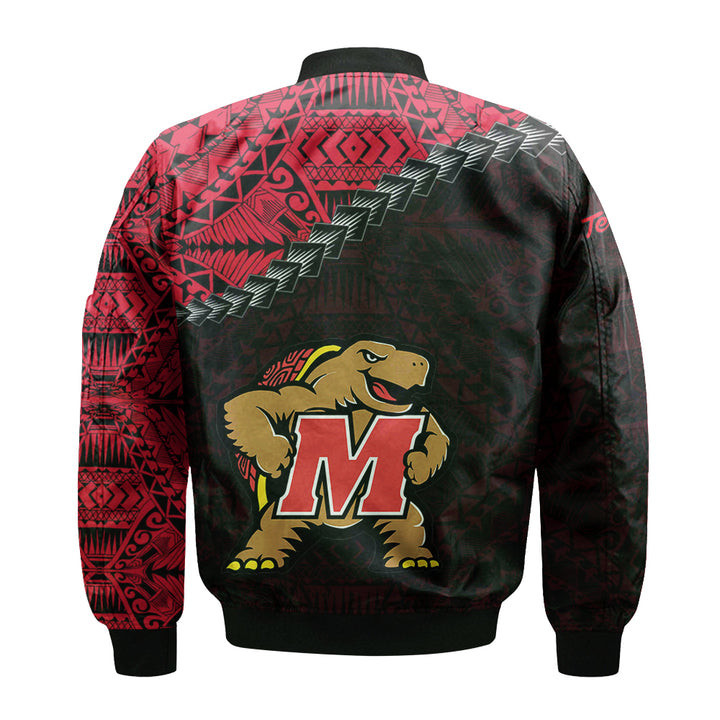 Maryland Terrapins Red Black Polynesian Bomber Jacket | NCAA College Team Jacket for Men & Women | Sports Fan Gift
