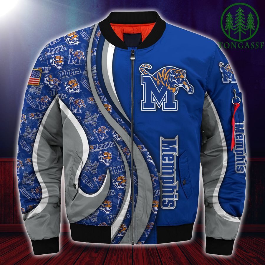 Memphis Tigers Personalized Name Number Blue Grey Bomber Jacket | NCAA College Team Jacket for Men & Women | Sports Fan Gift