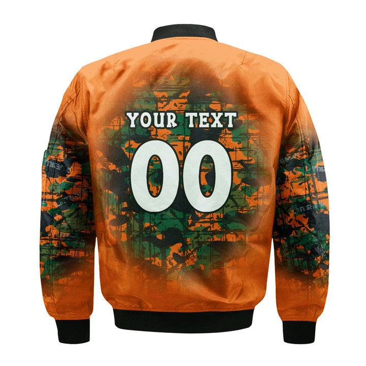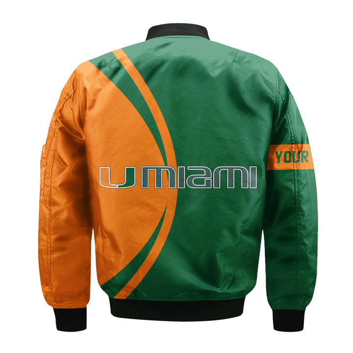 Miami Hurricanes Personalized Text Number Orange Green Bomber Jacket | NCAA College Team Jacket for Men & Women | Sports Fan Gift