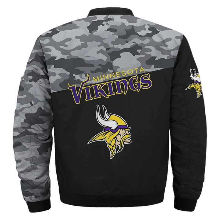 Minnesota Vikings Black Camo Bomber Jacket | NFL Team Jacket for Men & Women | Football Fan Gift