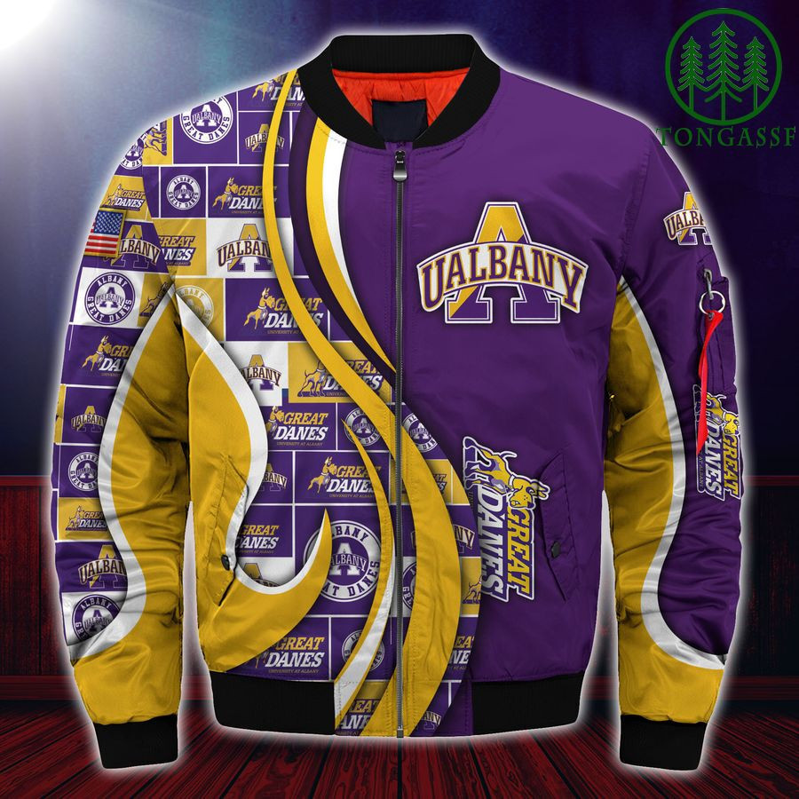 Albany Great Danes Personalized Name Number Purple Gold Bomber Jacket | NCAA College Team Jacket for Men & Women | Sports Fan Gift