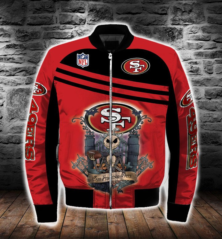 San Francisco 49ERS Monster Skeleton Red Bomber Jacket | NFL Team Jacket for Men & Women | Football Fan Gift