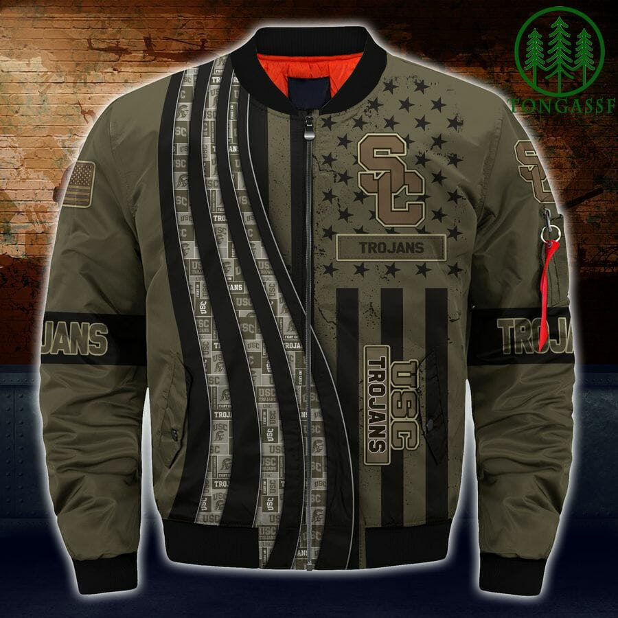 USC Trojans Camo Bomber Jacket | NCAA College Team Jacket for Men & Women | Sports Fan Gift