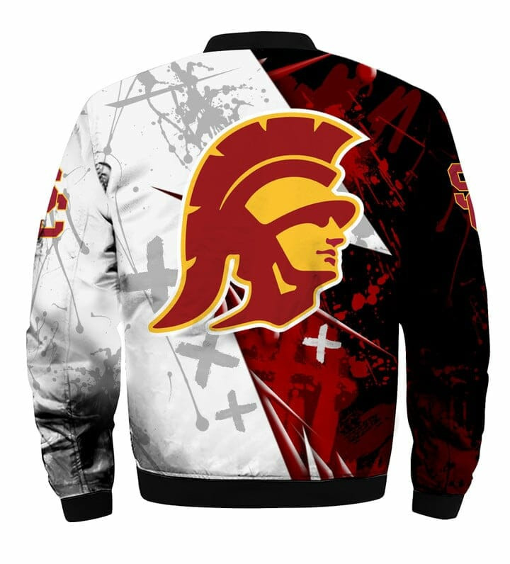USC Trojans Cardinal White Bomber Jacket | NCAA College Team Jacket for Men & Women | Sports Fan Gift