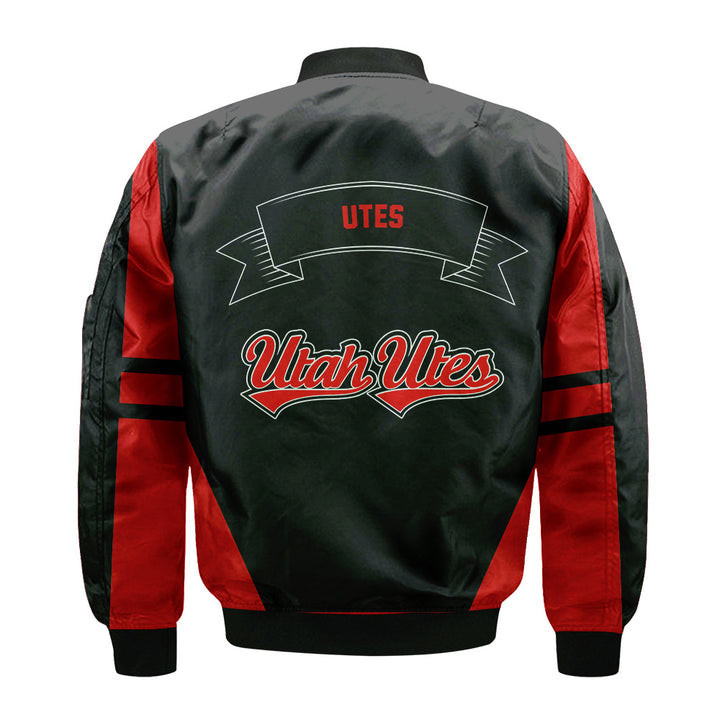 Utah Utes Red White Mascot Bomber Jacket | NCAA College Team Jacket for Men & Women | Sports Fan Gift