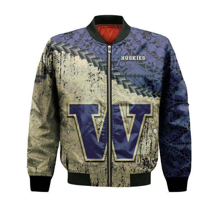 Washington Huskies Coconut Tree Tropical Bomber Jacket | NCAA College Team Jacket for Men & Women | Sports Fan Gift