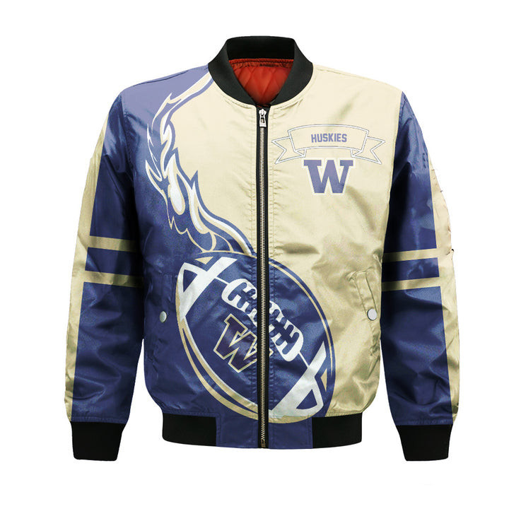Washington Huskies Personalized Text Champions Bomber Jacket | NCAA College Team Jacket for Men & Women | Sports Fan Gift