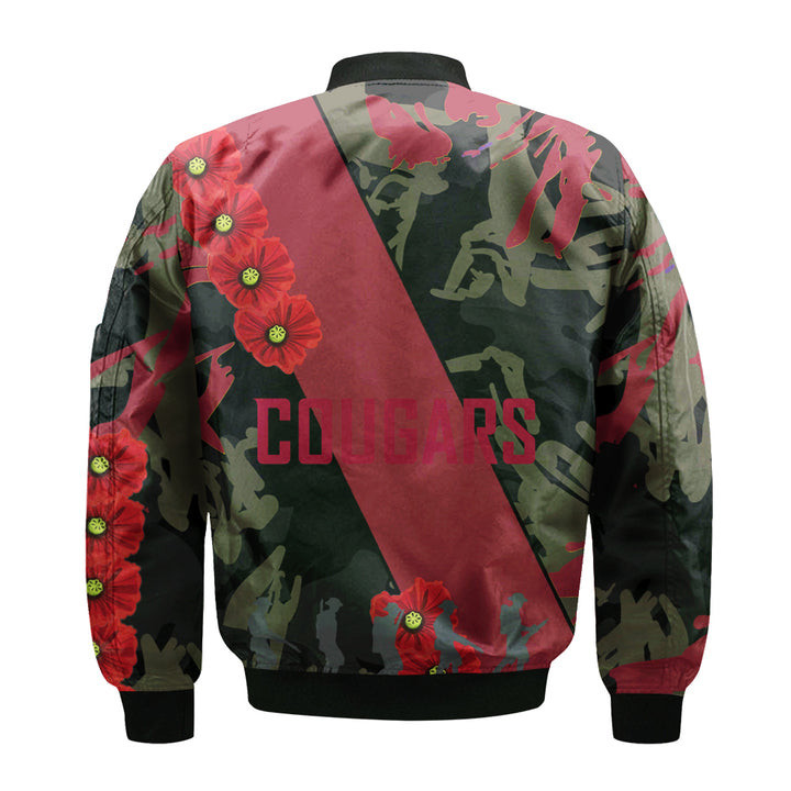 Washington State Cougars Red Flowers Black Bomber Jacket | NCAA College Team Jacket for Men & Women | Sports Fan Gift