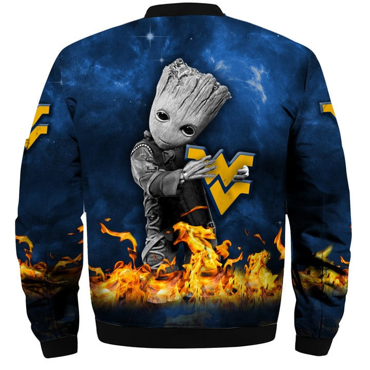 West Virginia Mountaineers Baby Groot Bomber Jacket | NCAA College Team Jacket for Men & Women | Sports Fan Gift