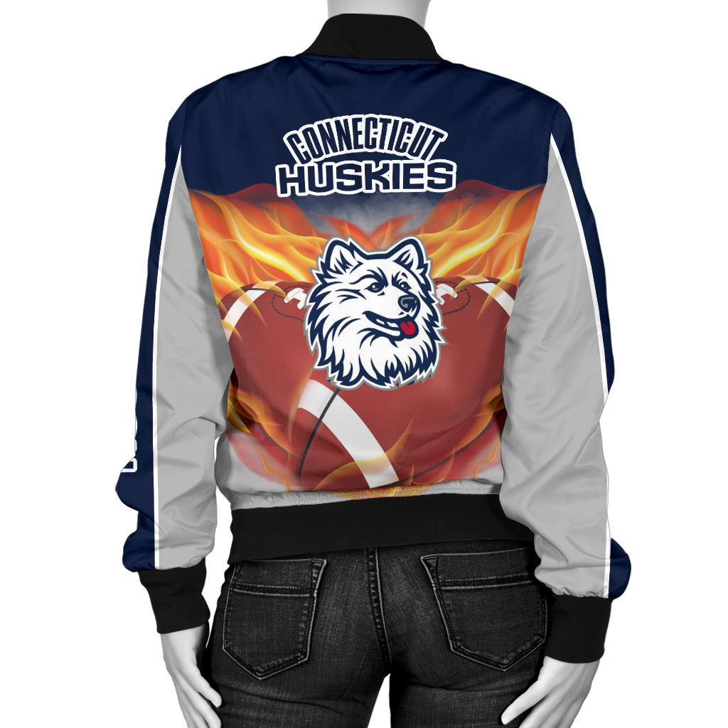 Connecticut Huskies Flame Ball Bomber Jacket | NCAA College Team Jacket for Men & Women | Sports Fan Gift