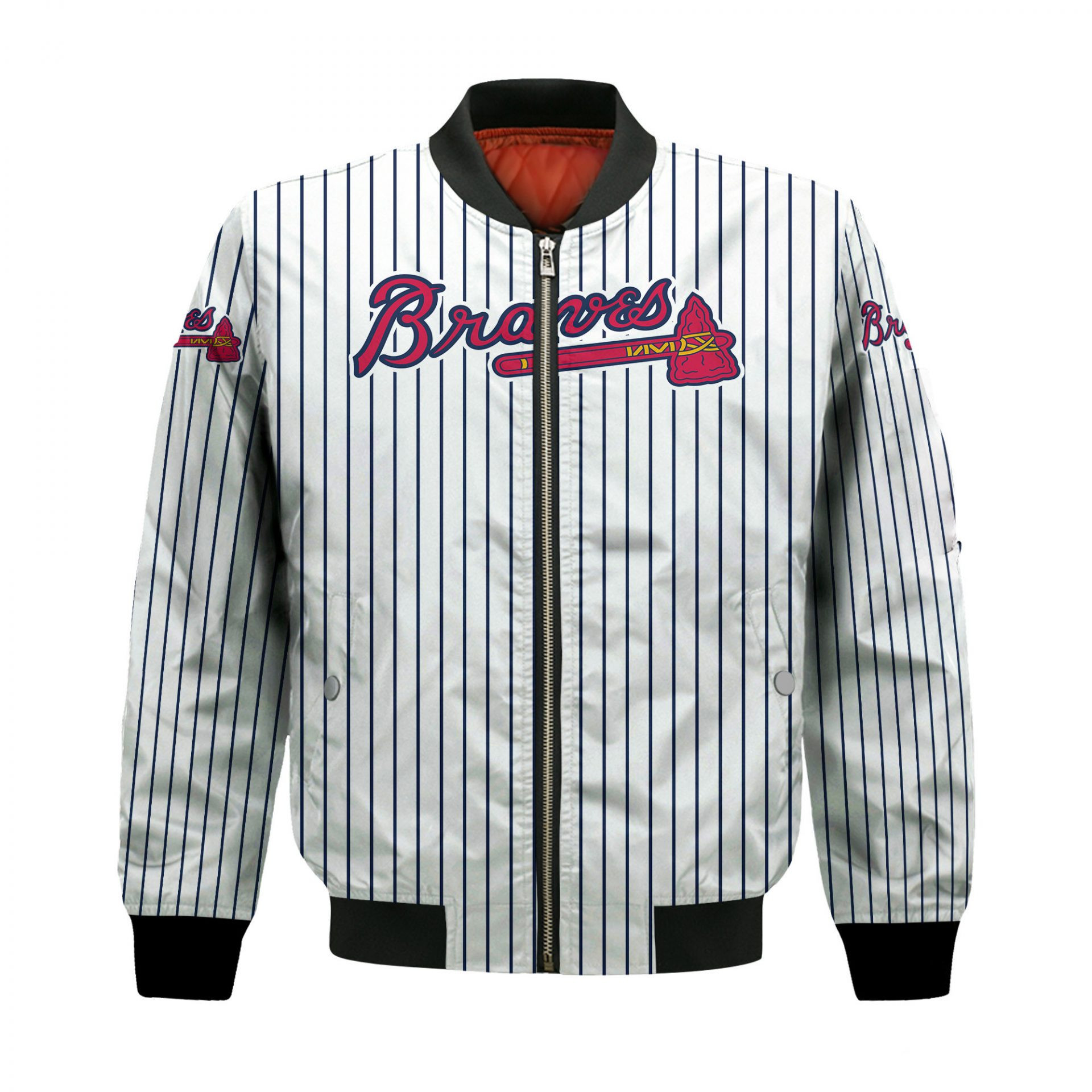Atlanta Braves Personalized Name Number Uniform Stripes Bomber Jacket | MLB Team Jacket for Men & Women | Baseball Fan Gift