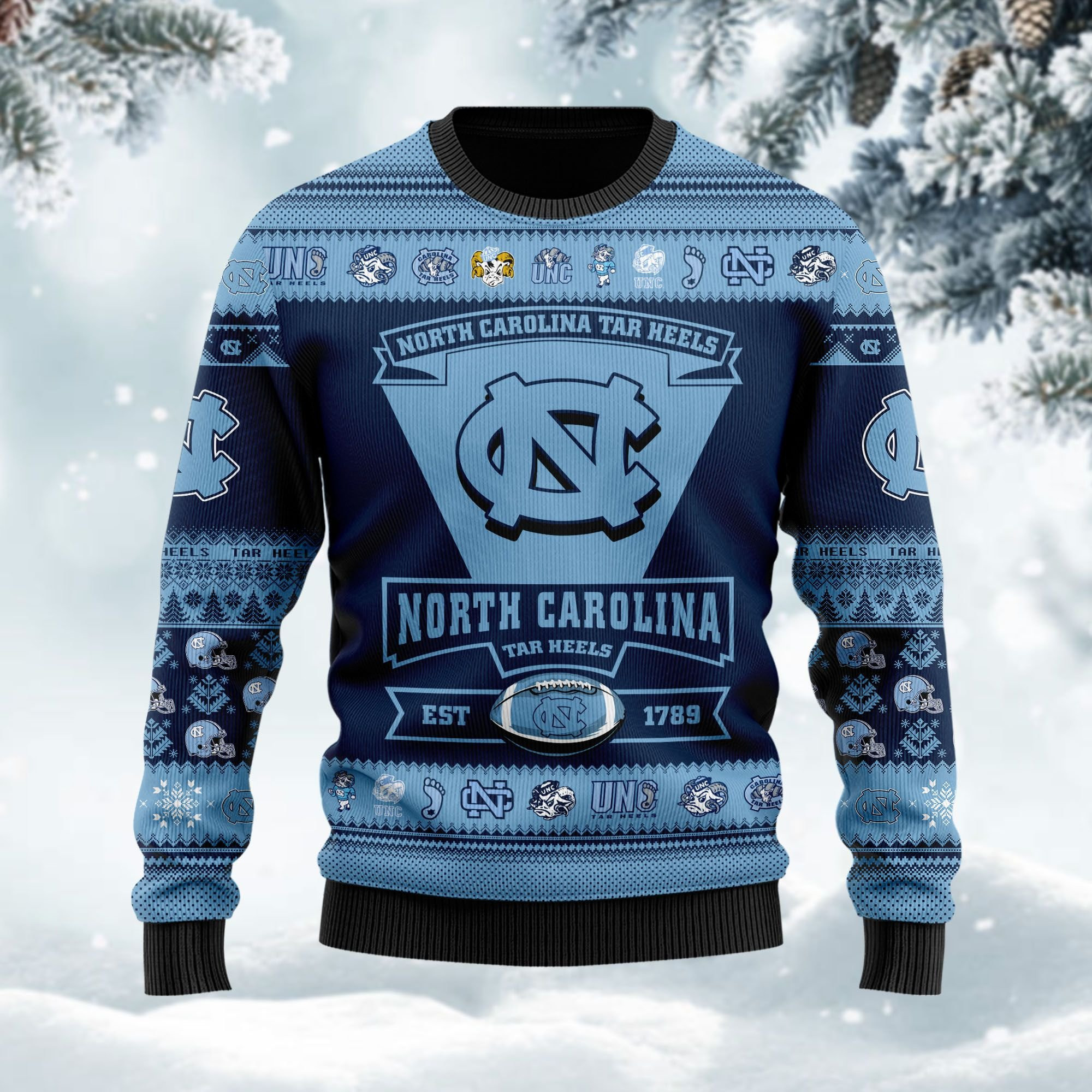 North Carolina Tar Heels Football Team Logo Personalized Ugly Christmas Sweater Perfect Holiday Gift