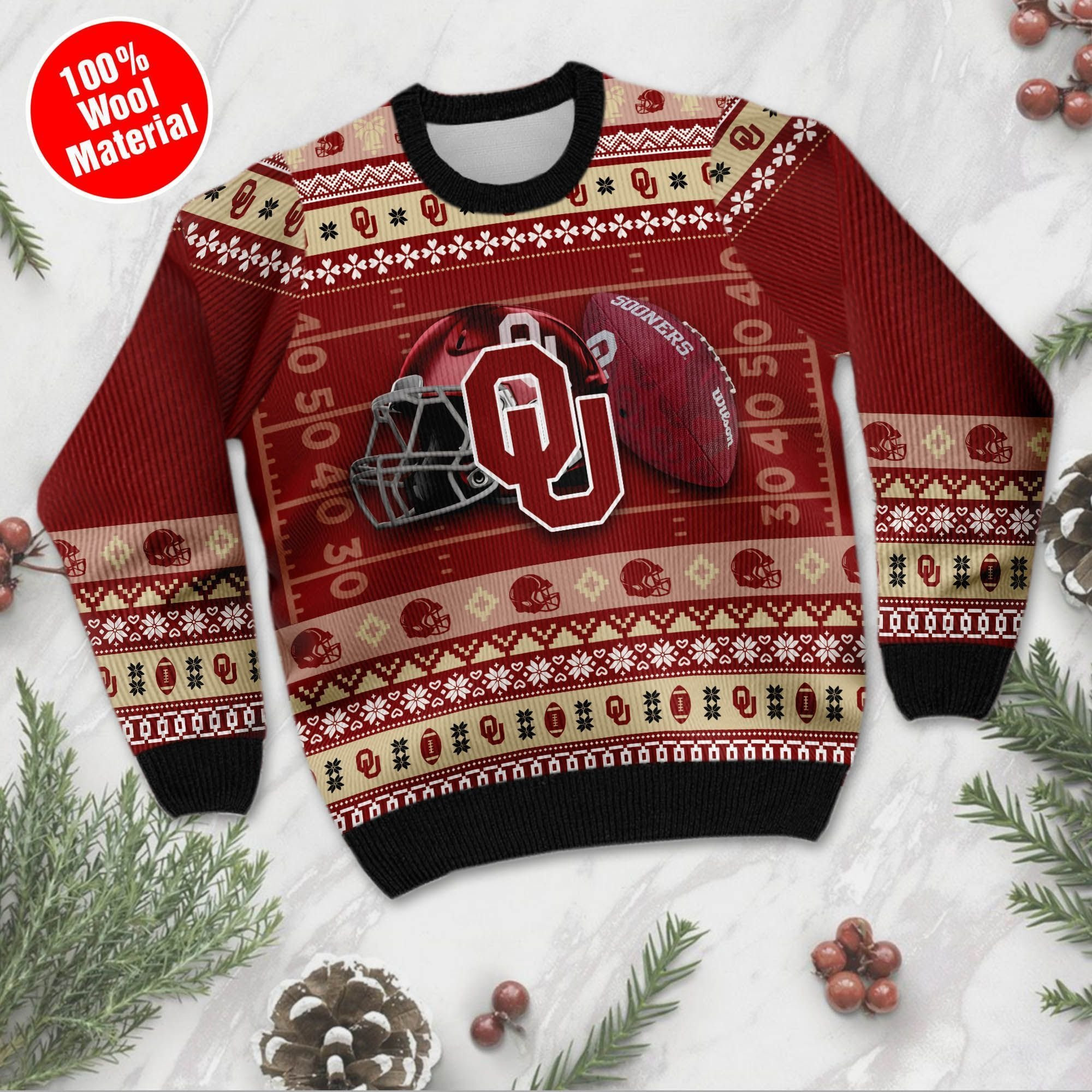 Oklahoma Sooners Football Team Logo Custom Name Personalized Ugly Christmas Sweater Perfect Holiday Gift