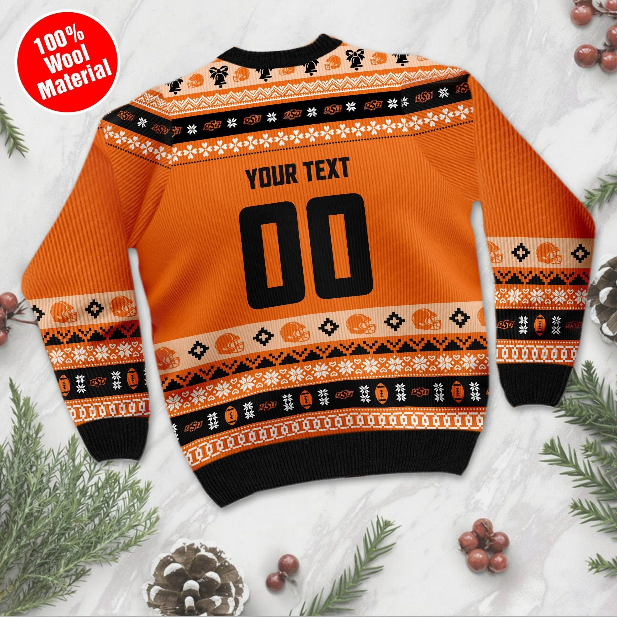 Oklahoma State Cowboys Football Team Logo Custom Name Personalized Ugly Christmas Sweater Holiday Party Men Women Plus Size