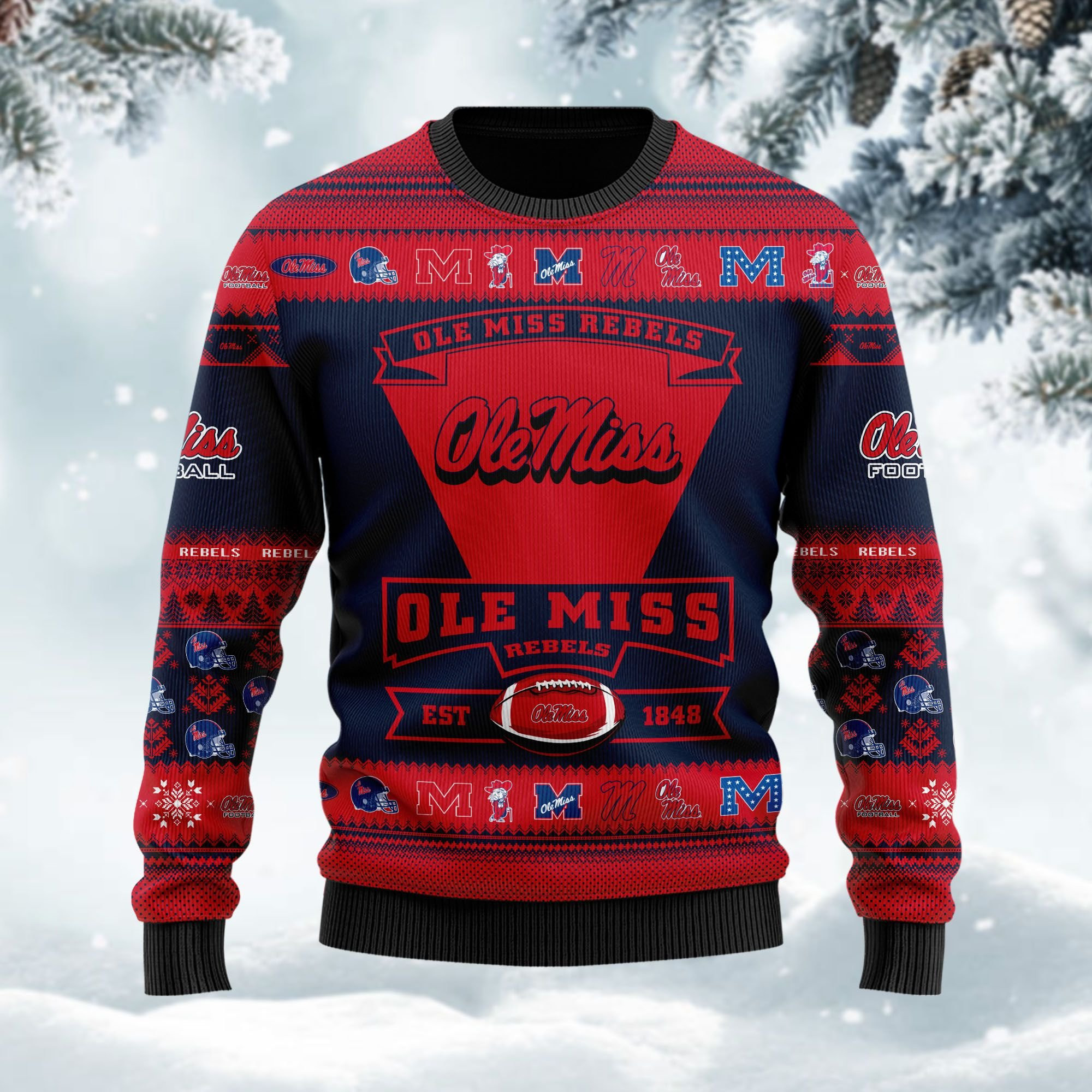 Ole Miss Rebels Football Team Logo Custom Name Personalized Ugly Christmas Sweater Holiday Party Men Women Plus Size