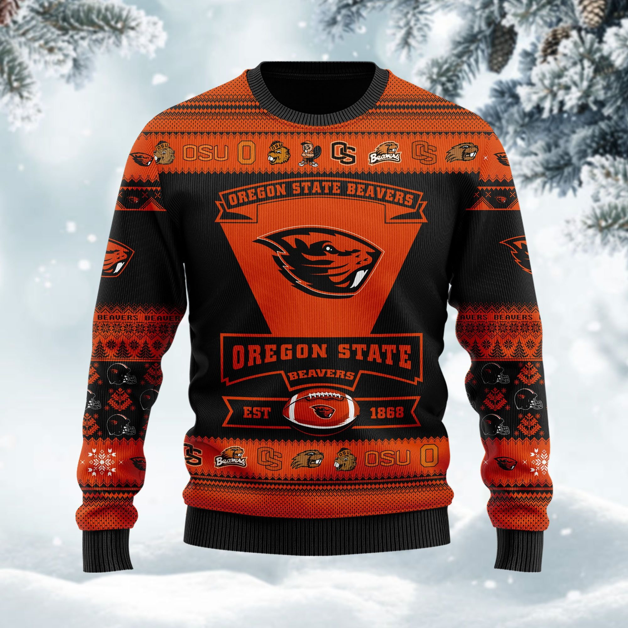 Oregon State Beavers Football Team Logo Personalized Ugly Christmas Sweater Perfect Holiday Gift