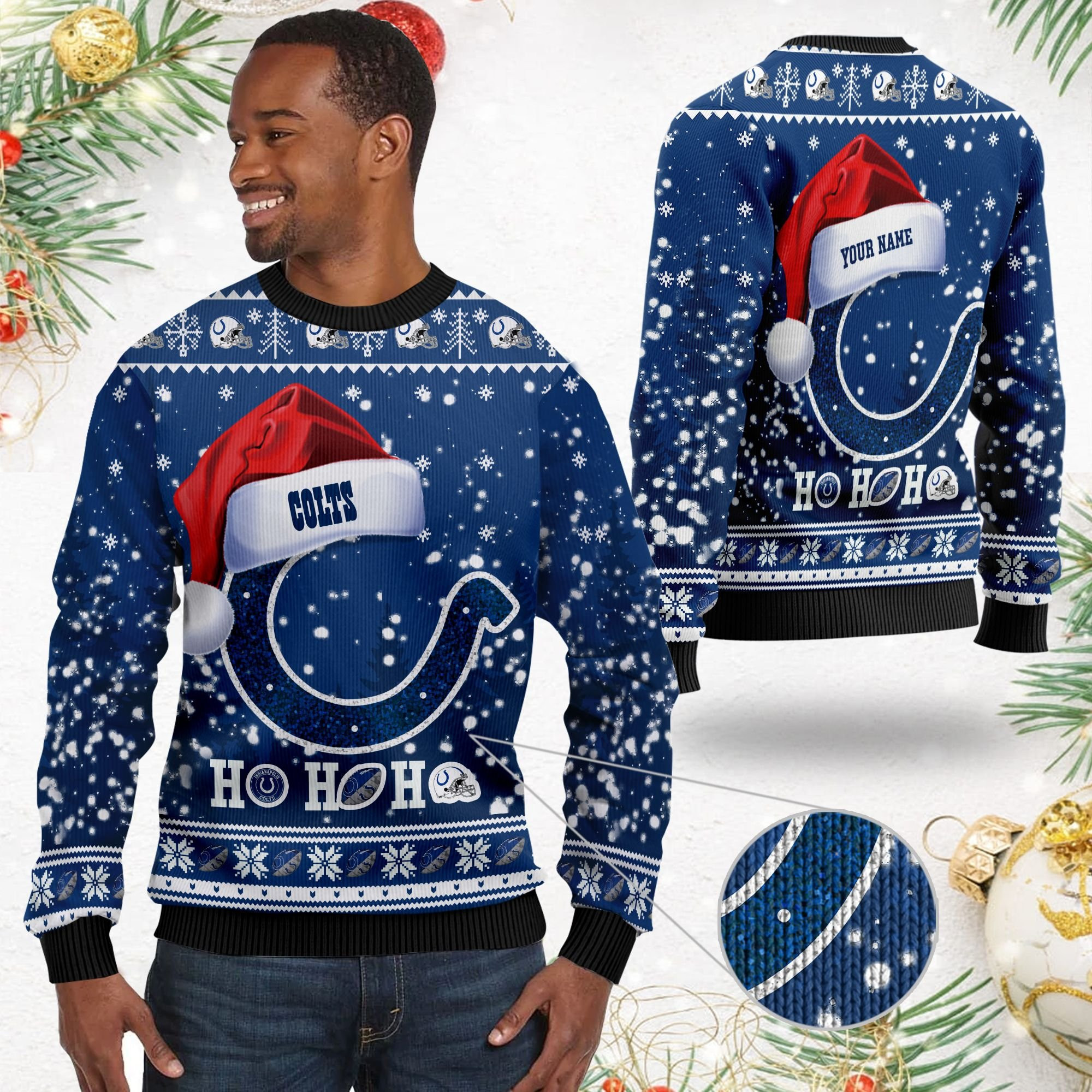 Indianapolis Colts Symbol Wearing Santa Claus Hat Ho Ho Ho Personalized Ugly Christmas Sweater Perfect Holiday Gift
