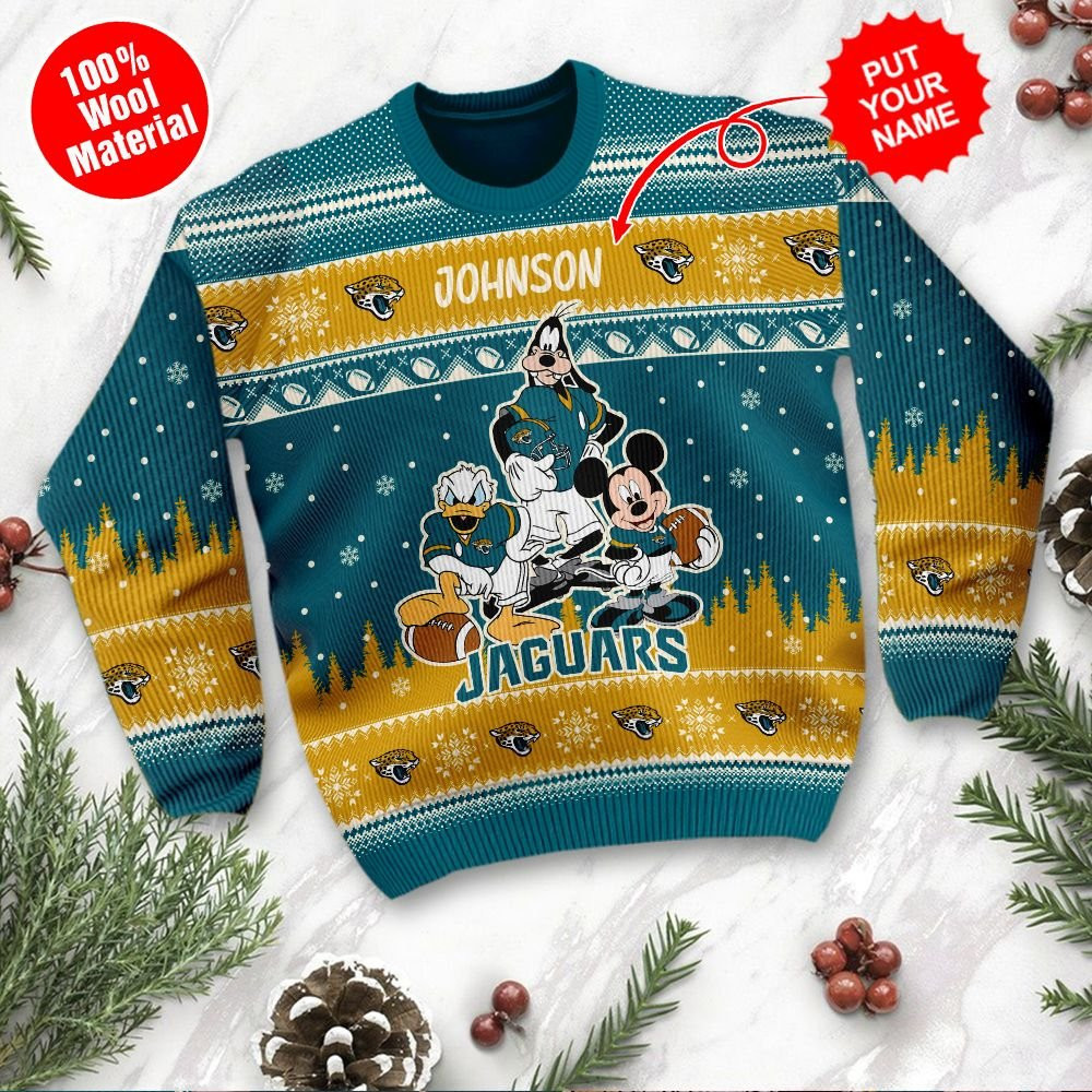 Jacksonville Jaguars Disney Donald Duck Mickey Mouse Goofy Personalized Ugly Christmas Sweater, Perfect Holiday Gift