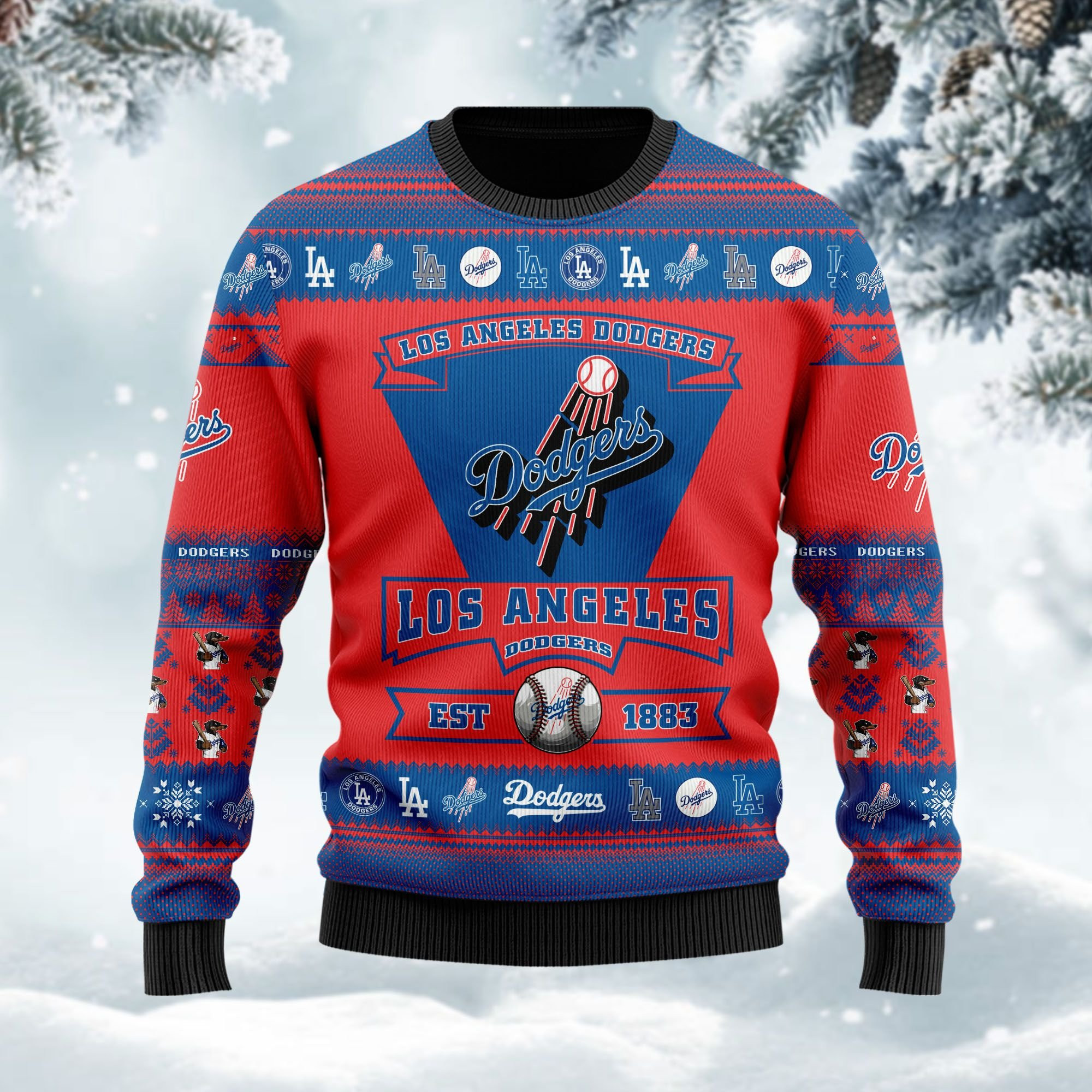 Los Angeles Dodgers Football Team Logo Personalized Ugly Christmas Sweater Perfect Holiday Gift