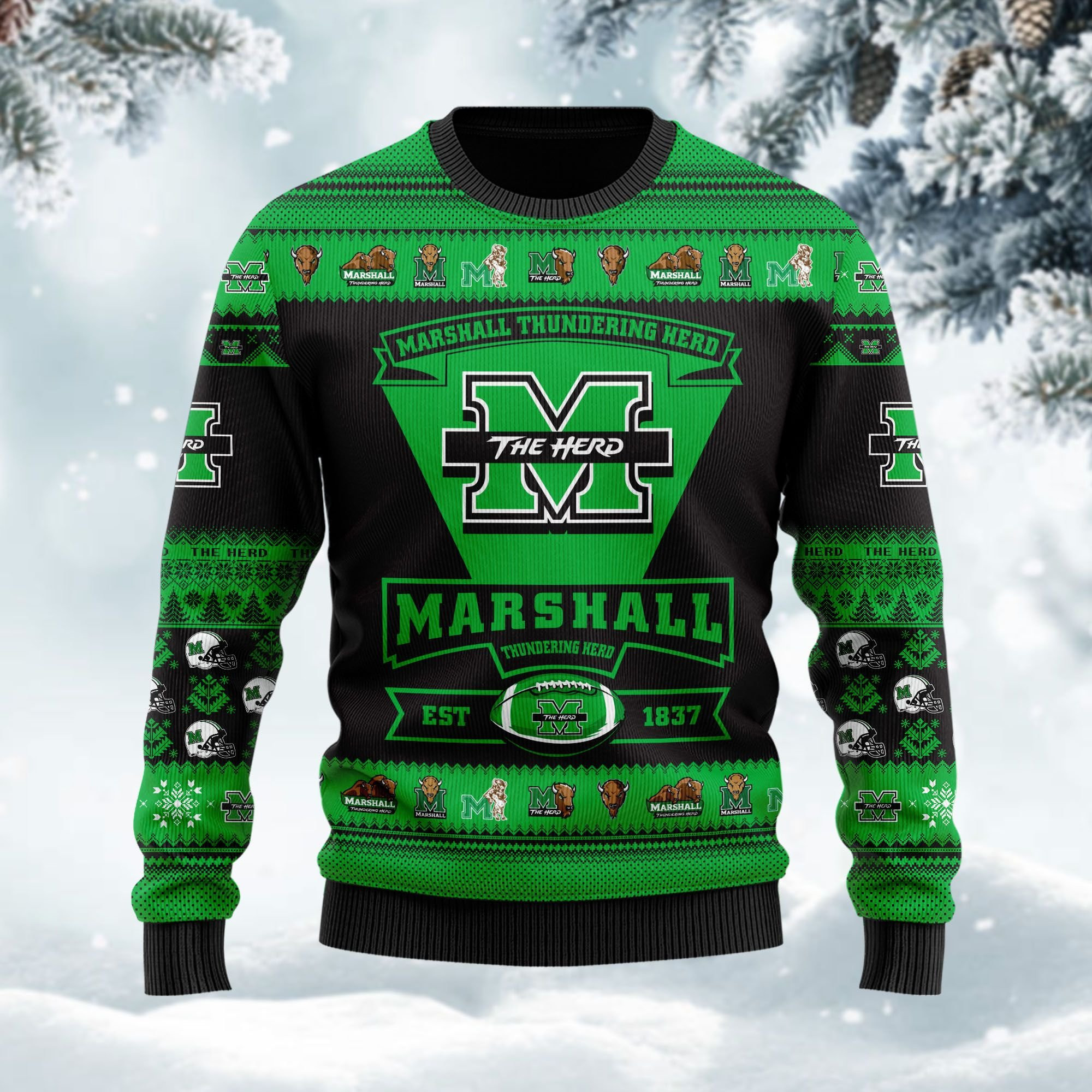 Marshall Thundering Herd Football Team Logo Personalized Ugly Christmas Sweater, Perfect Holiday Gift