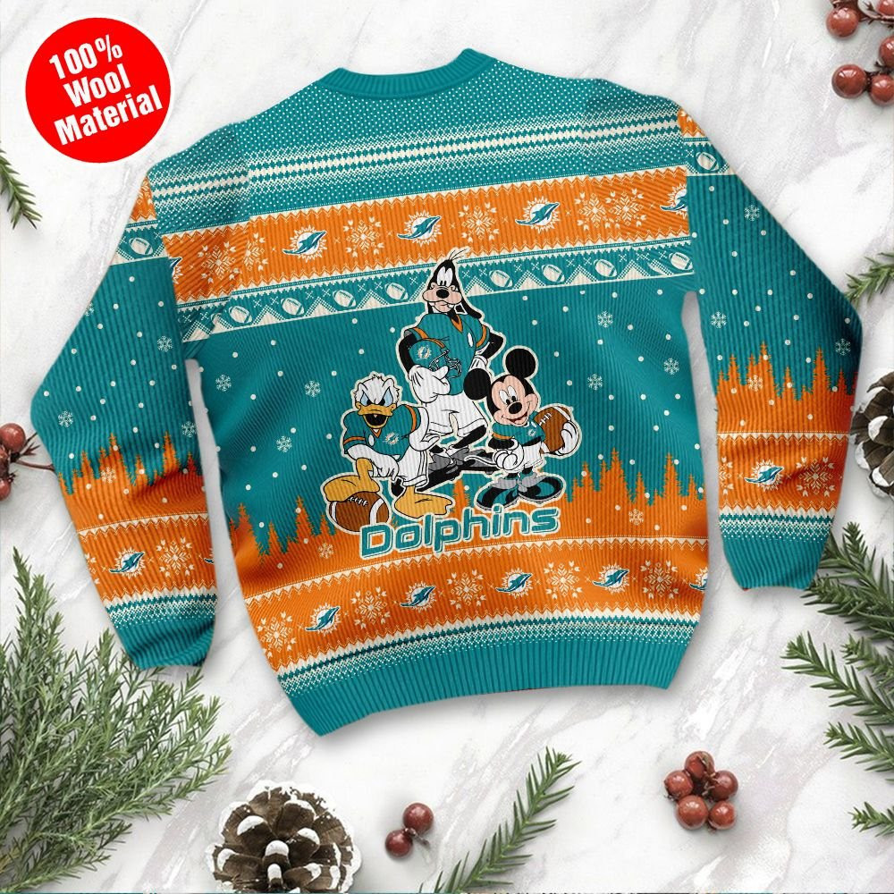Miami Dolphins Disney Donald Duck Mickey Mouse Goofy Personalized Ugly Christmas Sweater, Perfect Holiday Gift