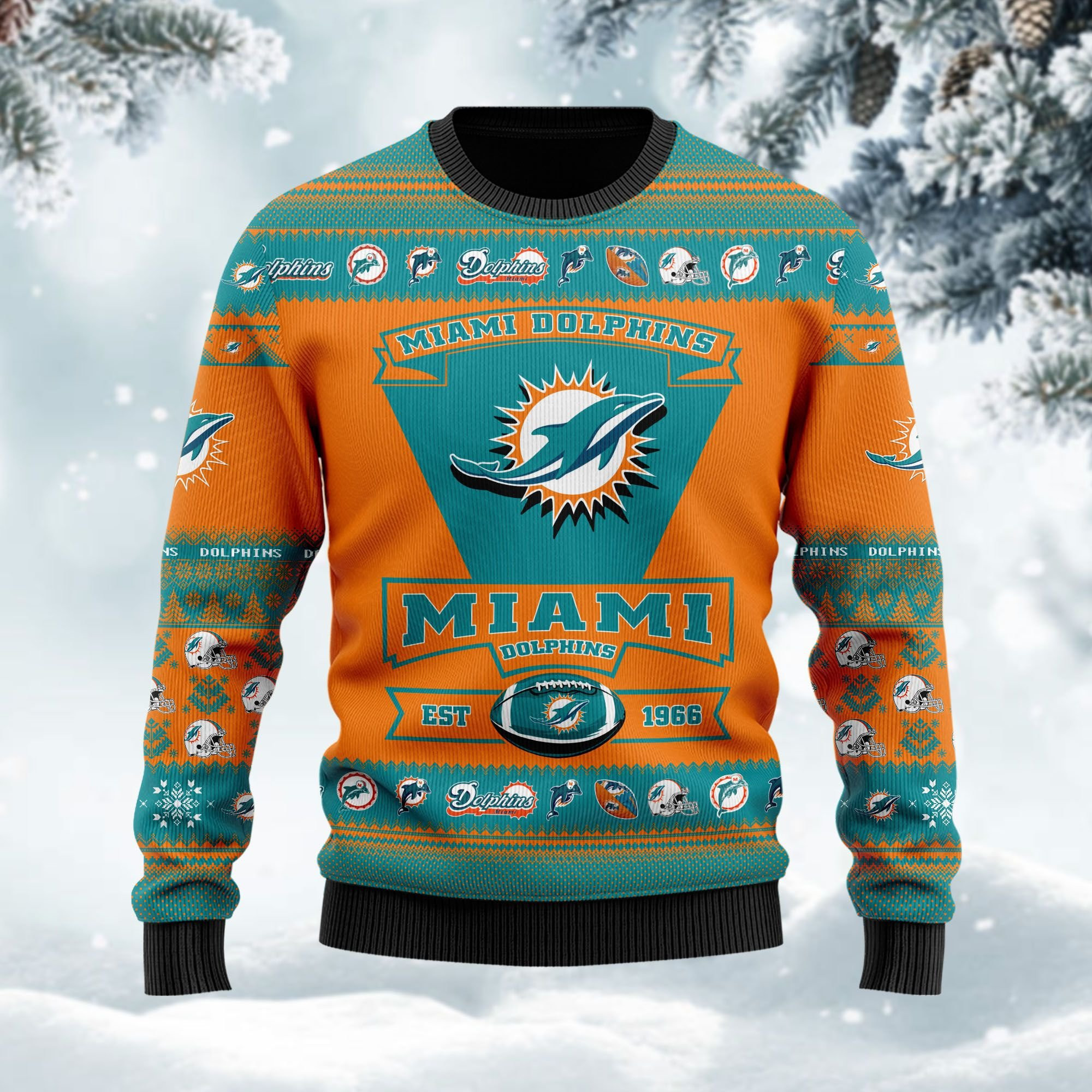 Miami Dolphins Football Team Logo Custom Name Personalized Ugly Christmas Sweater Perfect Holiday Gift