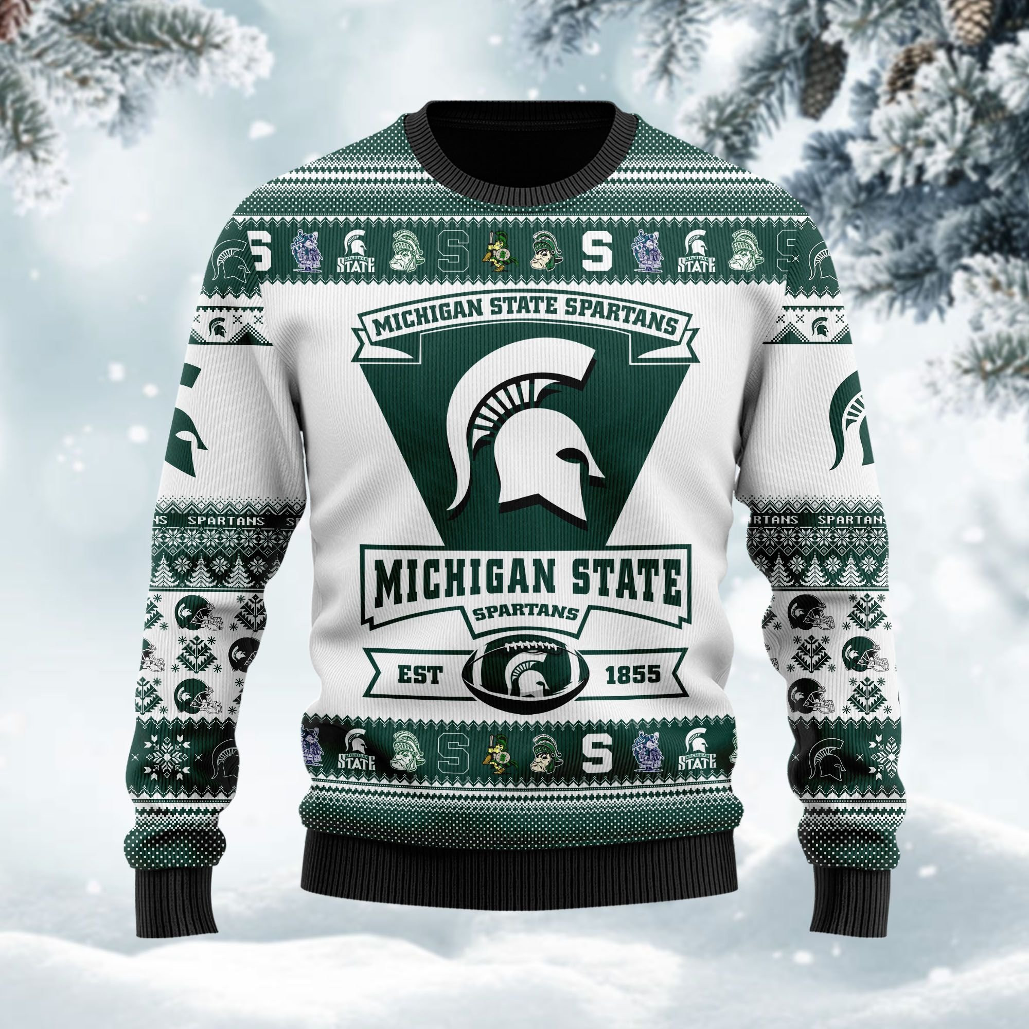 Michigan State Spartans Football Team Logo Personalized Ugly Christmas Sweater Perfect Holiday Gift