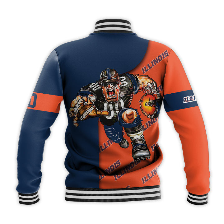 NCAA Illinois Fighting Illini Personalized Name Number Orange Blue Baseball Jacket for Men & Women | NCAA Team Fan Gift