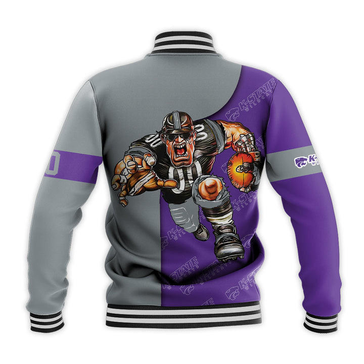 NCAA Kansas State Wildcats Personalized Name Number Purple Silver Mascot Baseball Jacket for Men & Women | NCAA Team Fan Gift