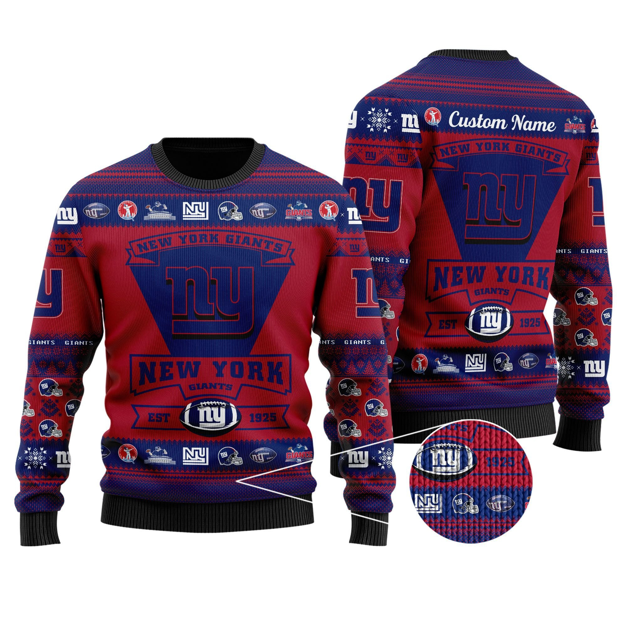 New York Giants Football Team Logo Custom Name Personalized Ugly Christmas Sweater, Perfect Holiday Gift