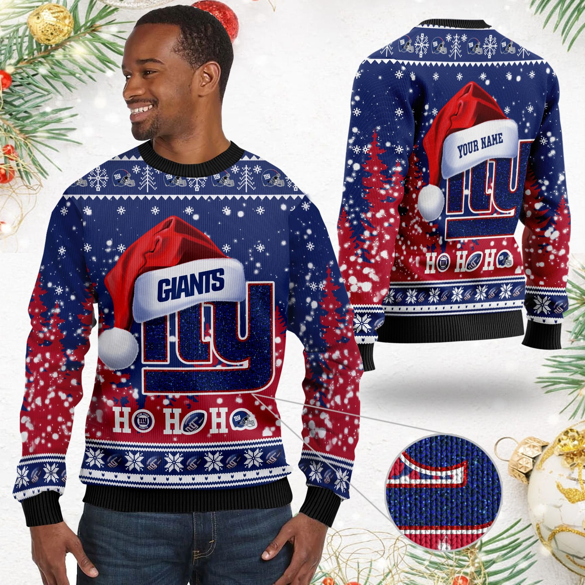 New York Giants Symbol Wearing Santa Claus Hat Ho Ho Ho Custom Personalized Ugly Christmas Sweater Perfect Holiday Gift
