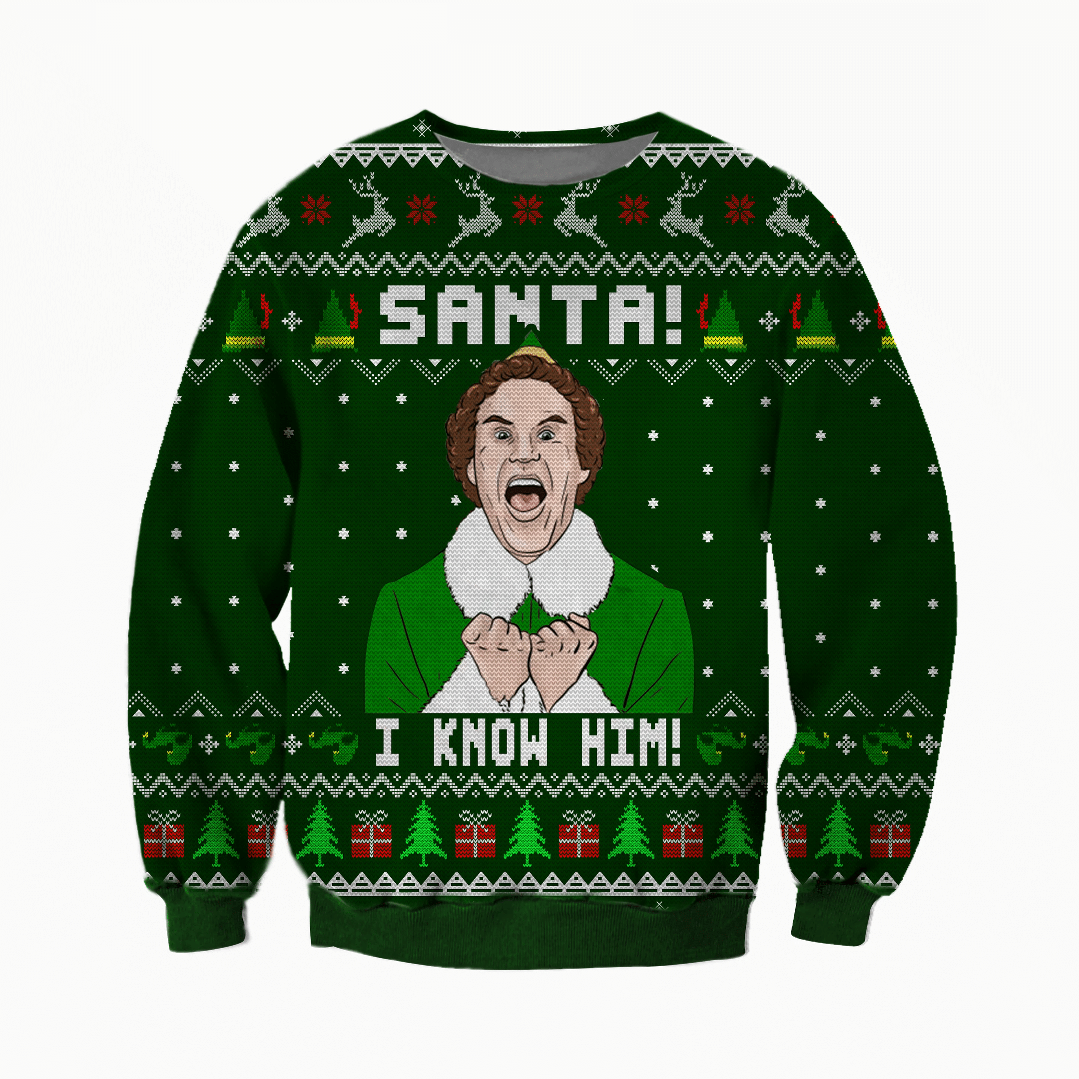 Santa I Know Him Knitting Pattern 3D Print Ugly Christmas Sweater
