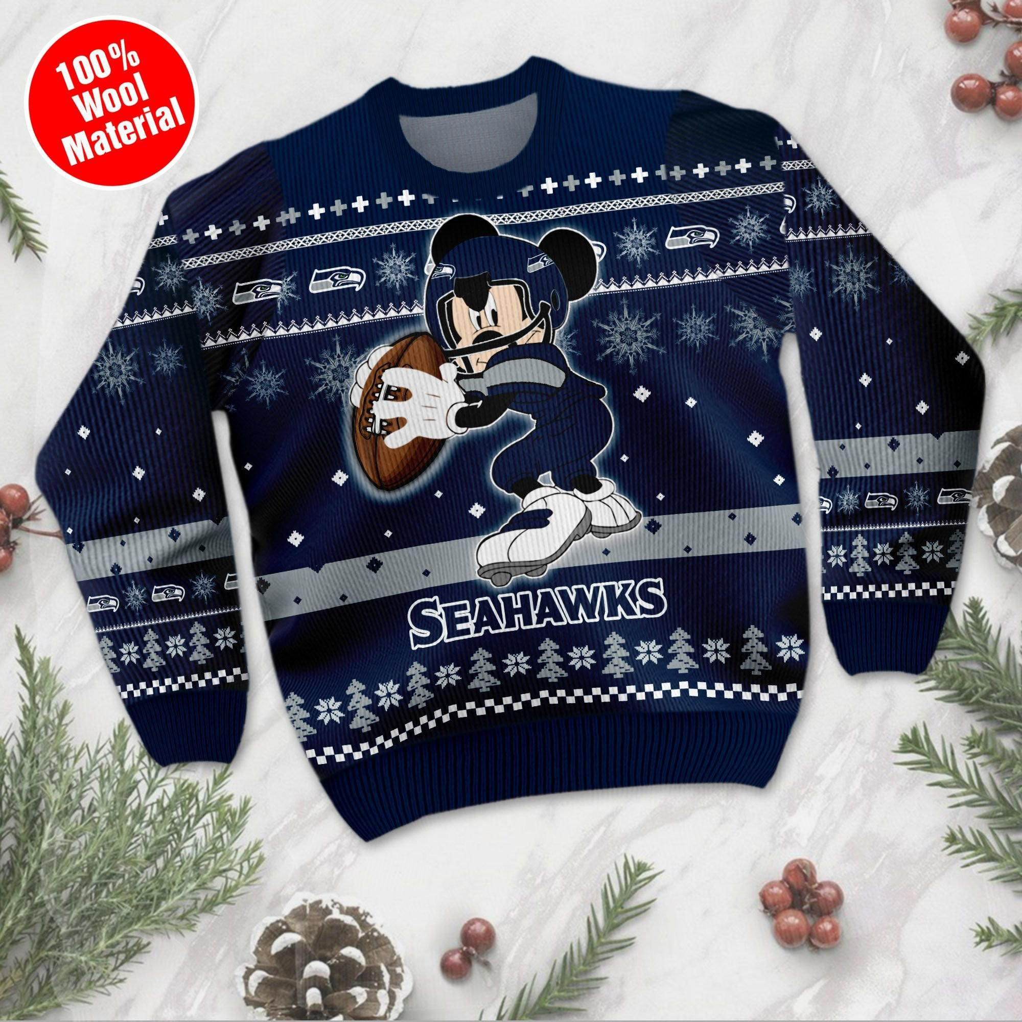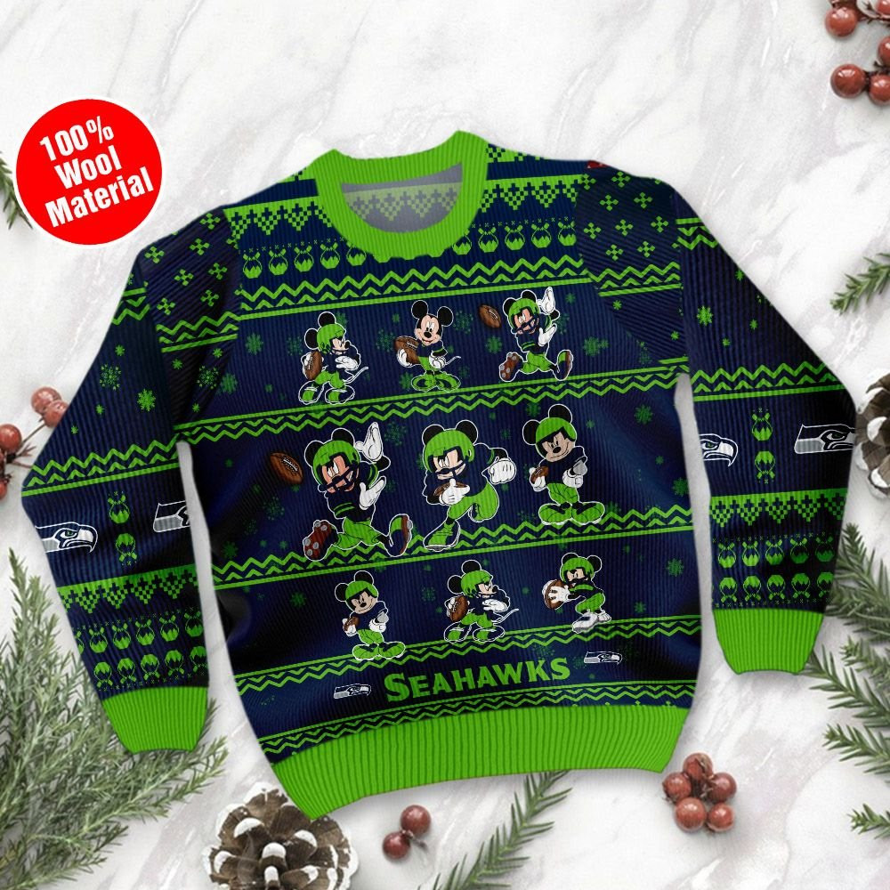 Seattle Seahawks Mickey Mouse Funny Ugly Christmas Sweater, Perfect Holiday Gift