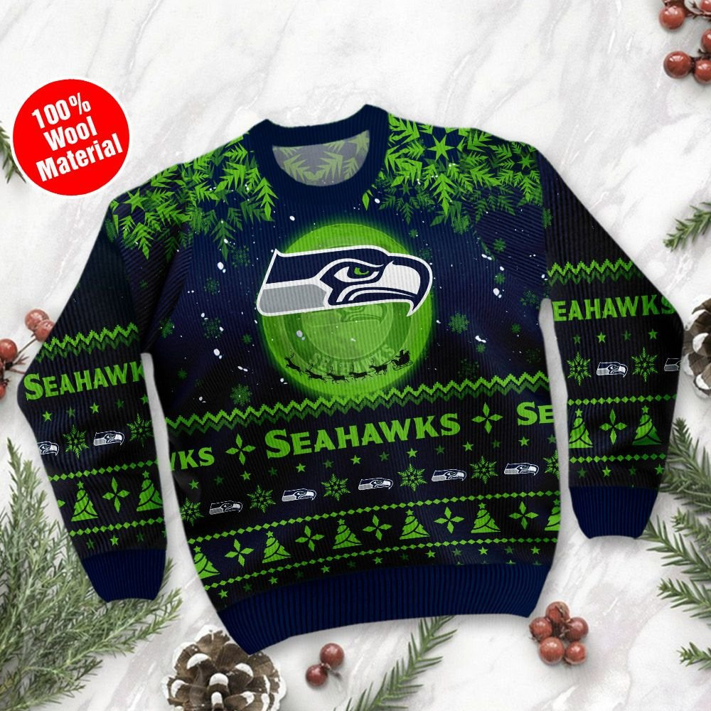 Seattle Seahawks Santa Claus In The Moon Ugly Christmas Sweater Holiday Party For Men Women