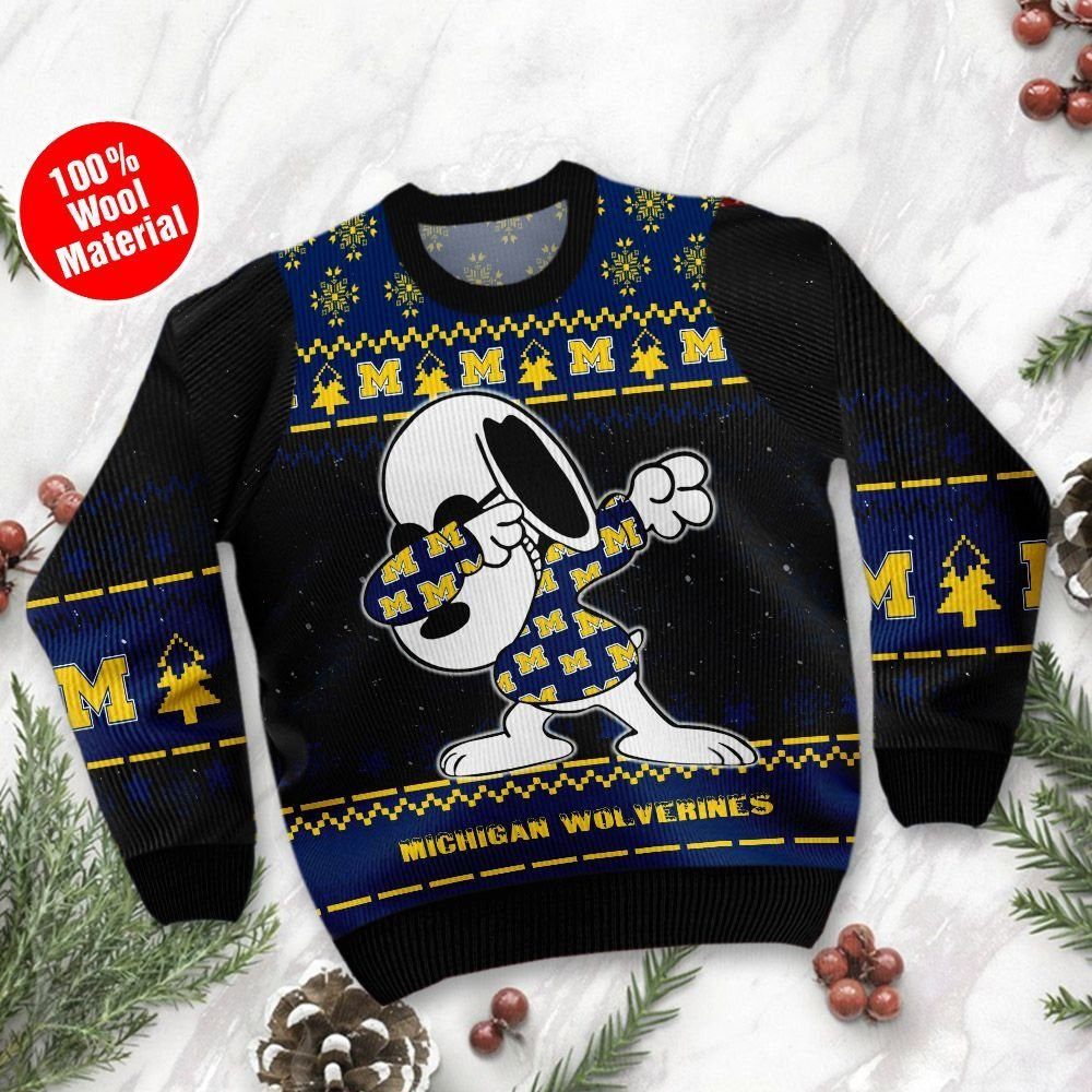 Michigan Wolverines Snoopy Dabbing Holiday Party Ugly Christmas Sweater Perfect Holiday Gift