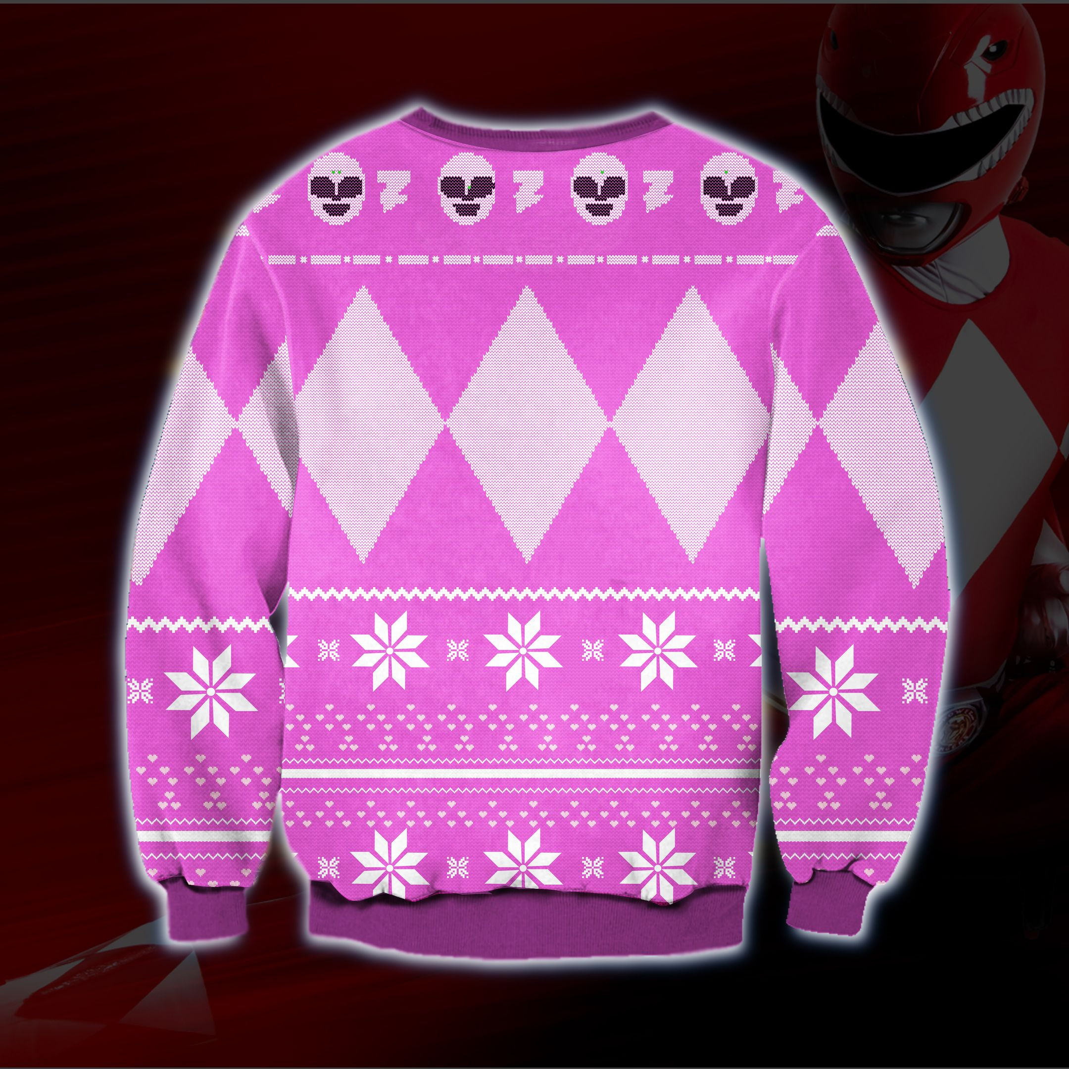 Power Rangers Knitting Pattern 3D Pink Print Ugly Christmas Sweater