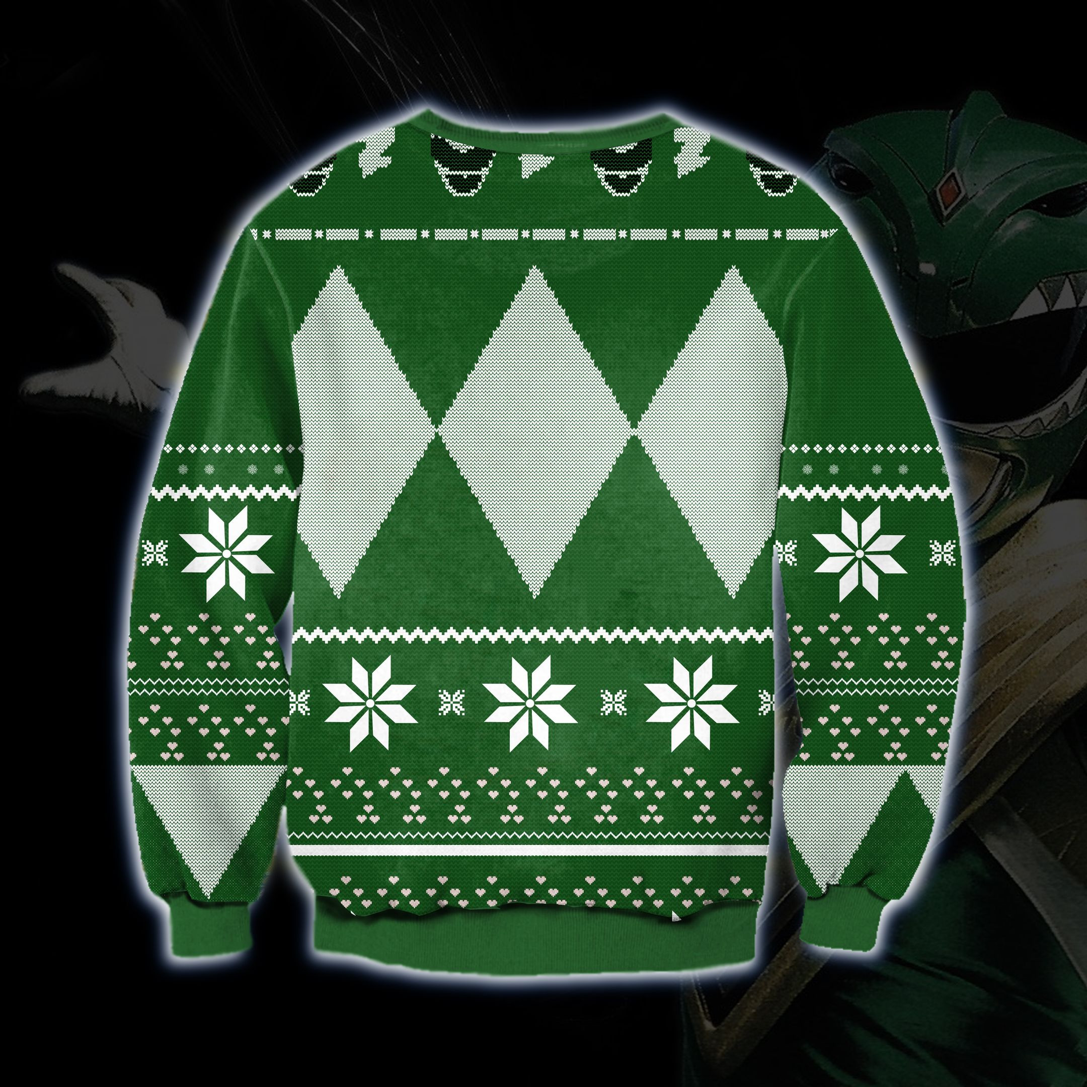 Power Rangers Knitting Pattern 3D Print Green Ugly Sweater