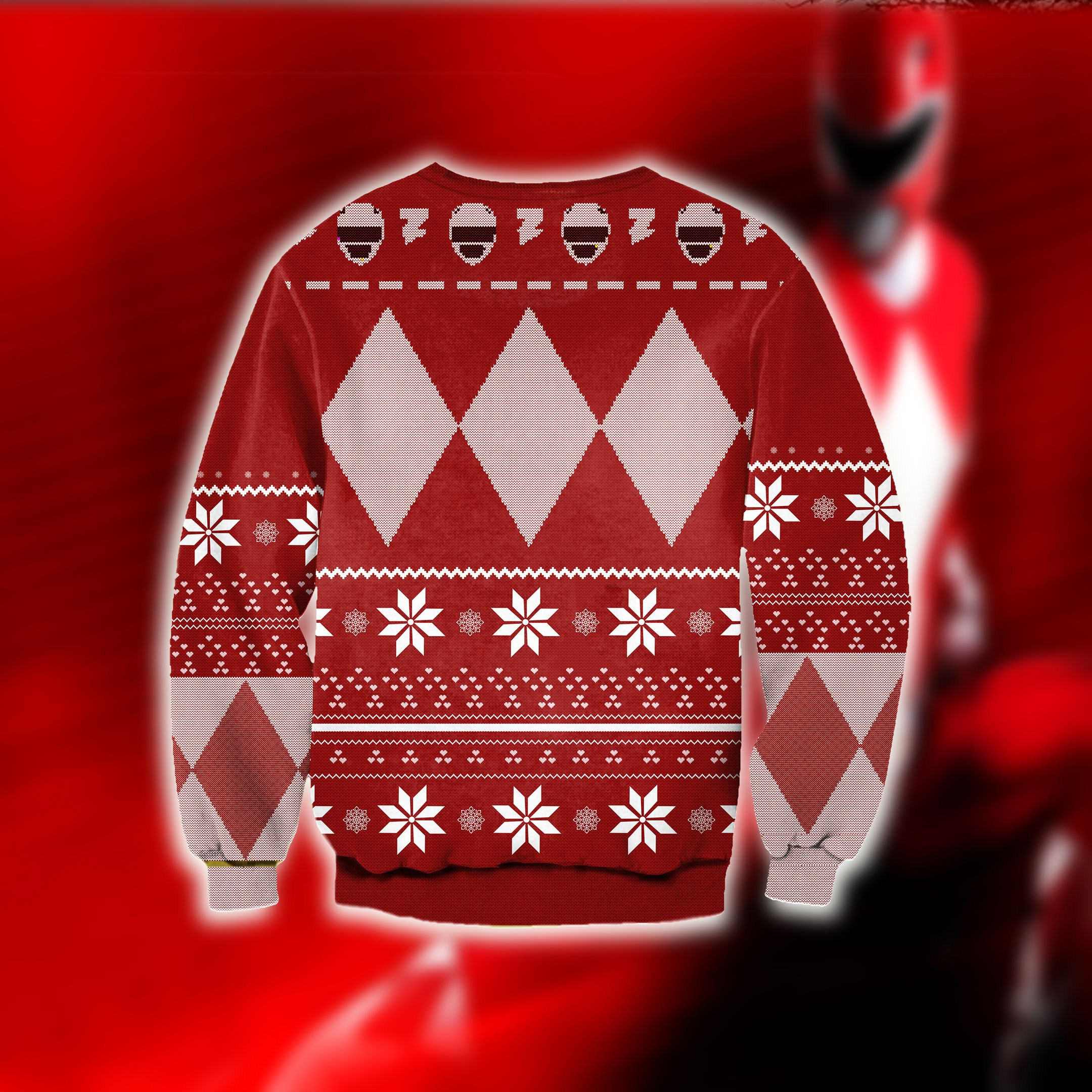 Power Rangers Knitting Pattern 3D Print Red Ugly Sweater