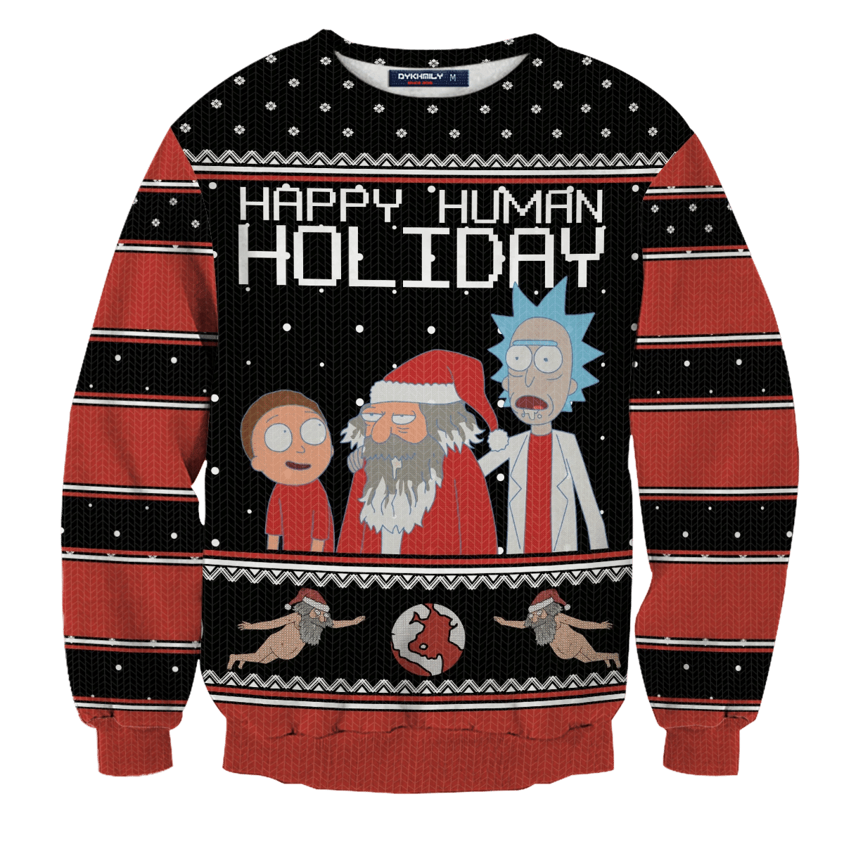 Happy Human Holiday 3D Print Ugly Christmas Sweater, Perfect Holiday Gift