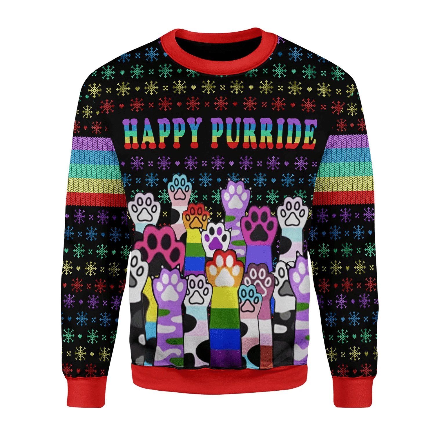 Happy Purride LGBT Ugly Christmas Sweater, Perfect Holiday Gift