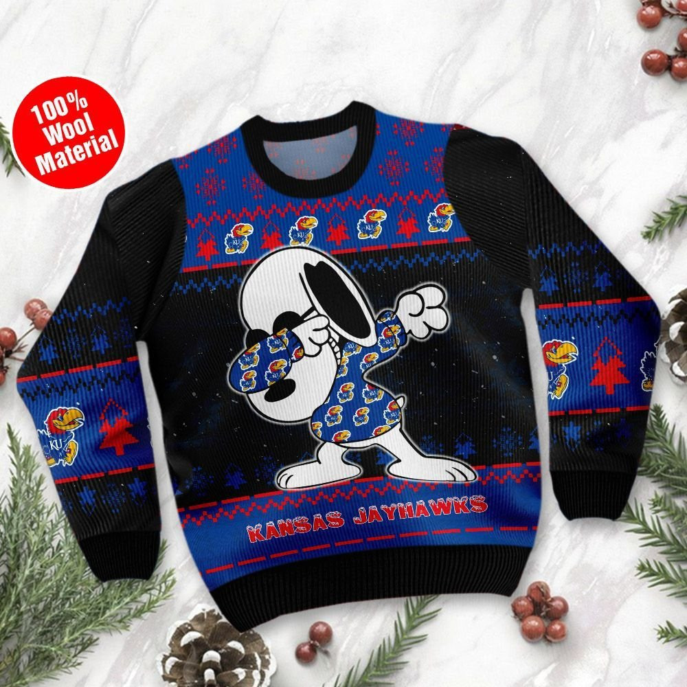 Kansas Jayhawks Snoopy Dabbing Ugly Christmas Sweater, Perfect Holiday Gift
