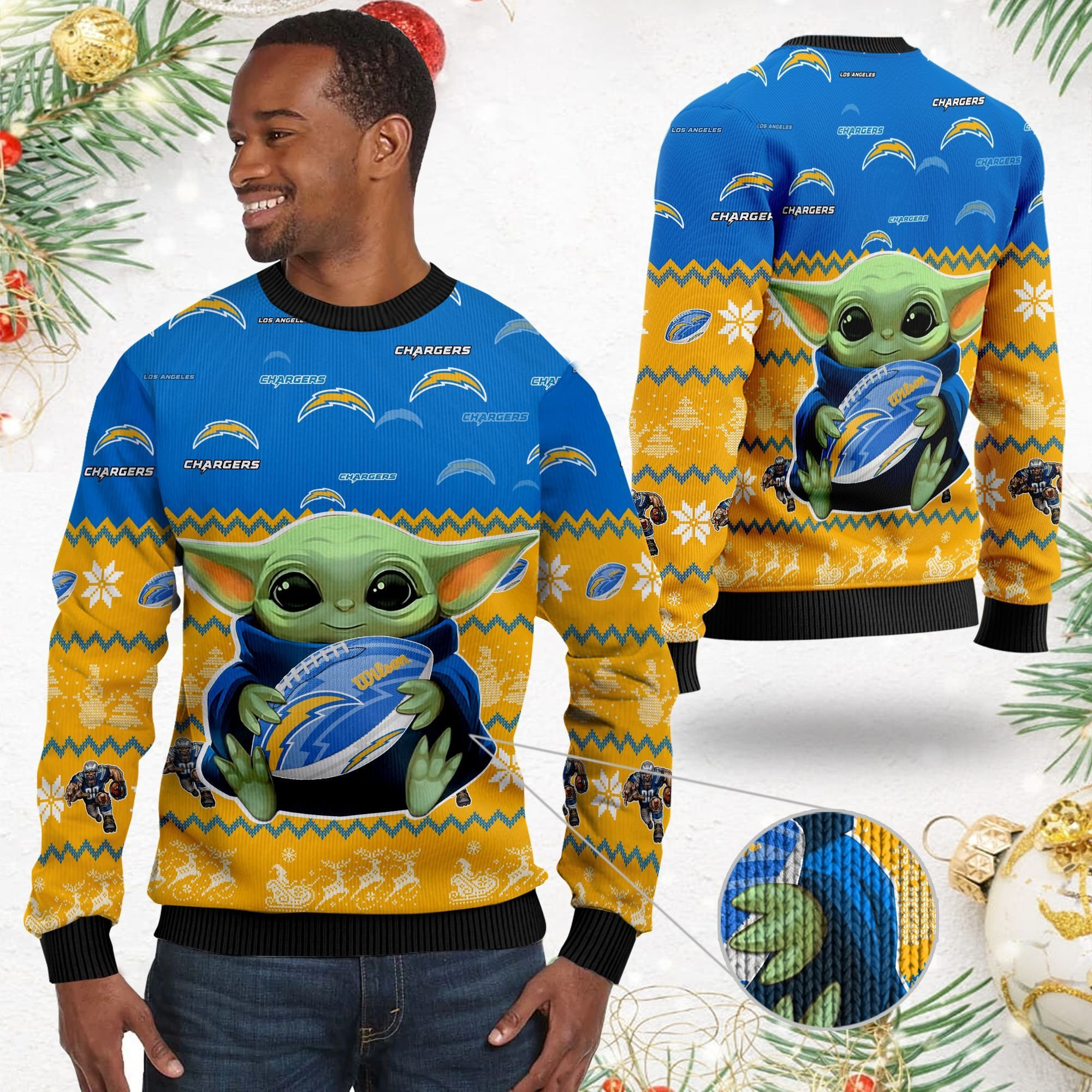 Los Angeles Chargers Baby Yoda Ugly Christmas Sweater, Perfect Holiday Gift