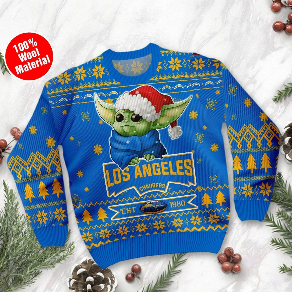 Los Angeles Chargers Cute Baby Yoda Grogu Ugly Christmas Sweater, Perfect Holiday Gift